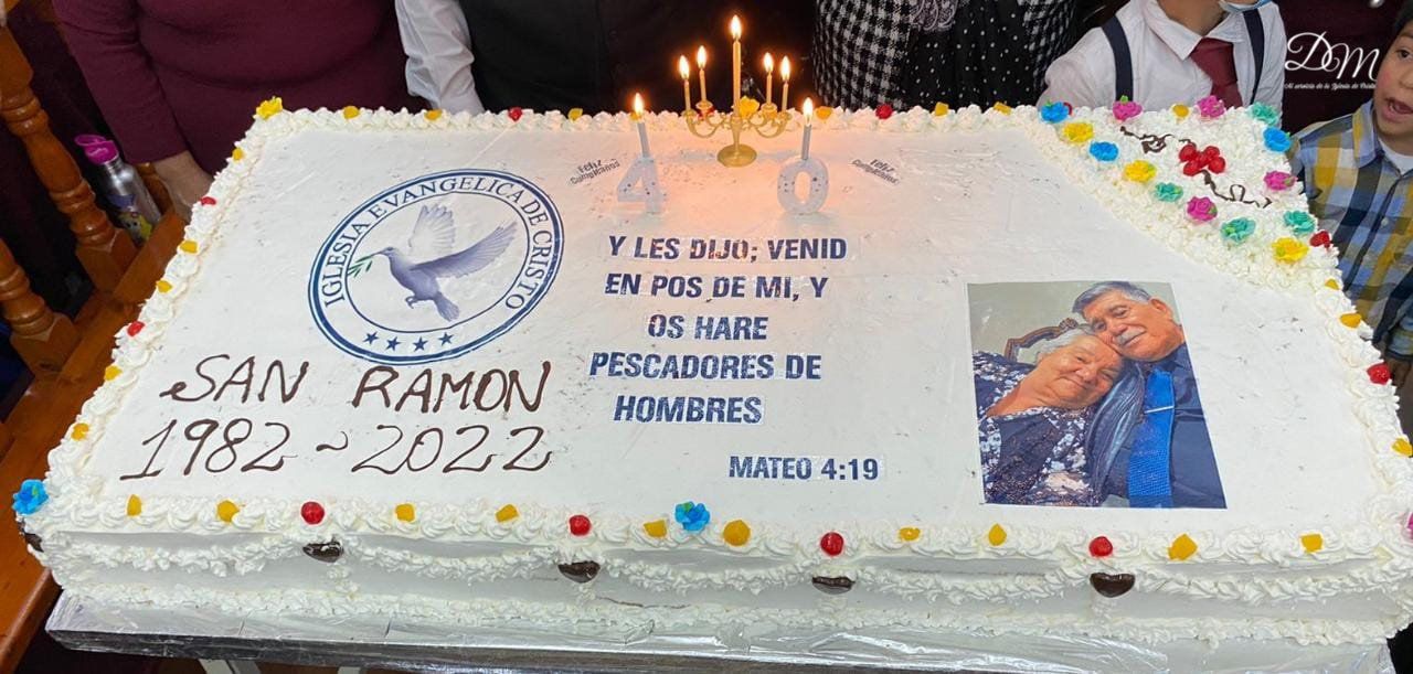 El día Sabado como congregación tuvimos la bendición de ser partes de la celebración por los 40 años de la Iglesia Evangélica de Cristo San Ramón. Honramos la fidelidad de nuestro amado Obispo pastor René Suazo que un día obedeció la voz de nuestro Señor creyéndole cuando le dijo que iba a ser pescador de hombres. ¡Qué bendición! que reuniones familiares donde nuestra amada pastora Carmen Jara e hijas iniciarón se hayan convertido en la congregación Iglesia de San Ramón, testimonio de la Fidelidad de Dios, cuyos frutos son iglesias a lo largo de Chile, traspasando la coordillera, llegando a la Argentina con muchas congregaciones y también a Perú, Brasil. Tambien acogiendo iglesias bajo su alero. ¡Gloria a Dios! Como dice nuestro Obispo “Él a los suyos nunca abandona” Amén.