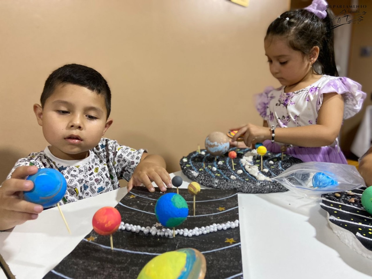 Juntos confeccionamos un sistema solar como también diseñamos nuestro planeta Tierra.